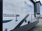 Introducing a new RV of its kind, the ROOST43 is a destination-style fifth wheel you are sure to love! There are two levels, making it feel more like home, and you can sleep six to eight each night. The master bedroom includes a custom king bed slide out, a 32" TV and fireplace, a desk/vanity, plus a half bath for convenience. A custom king-size bed is also found in the front loft, and there are storage cubbies plus a coax/110V outlet here to plug in chargers or a laptop. The second loft in the back includes spiral stairs, two bunk mats, a wardrobe, and cubby cubes here also for your guests' things. Some of the stand-out features you'll find on the first level are the sectional sofa with a coffee table, an entertainment center with a 65" TV, a kitchen island with five chairs, and a fully-equipped kitchen. The 20 cu. ft. 12V refrigerator and pull-out pantry will let you stock up on food, and the kitchen hutch will be perfect for nice dishes. The full bath on this model is one to remember; there is a one-piece fiberglass shower with a teak seat, a flip-up shelf and a washer/dryer, a backlit mirror, and more. And we haven't even touched on the exterior features, such as the pull-out tray, outdoor refrigerators, 20' awning, and more!