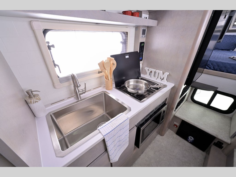 Sleeps 3 Length 20 ft 2 in Ext Width 9 ft Ext Height 10 ft Int Height 6 ft 5 in Exterior Color Bright White, Steel Gray, Jet Black, Electric Blue, Burgundy Dry Weight 4419 lbs Fresh Water Capacity 43 gals Grey Water Capacity 35 gals Black Water Capacity 25 gals Available Beds RV Queen Refrigerator Type 12V Compressor Refrigerator Size 8 cu ft Cooktop Burners 2 Center of Gravity Front 48.5 in Water Heater Type Alde Truck Bed Size Long Body Style Hard-Side Shower Type Standard