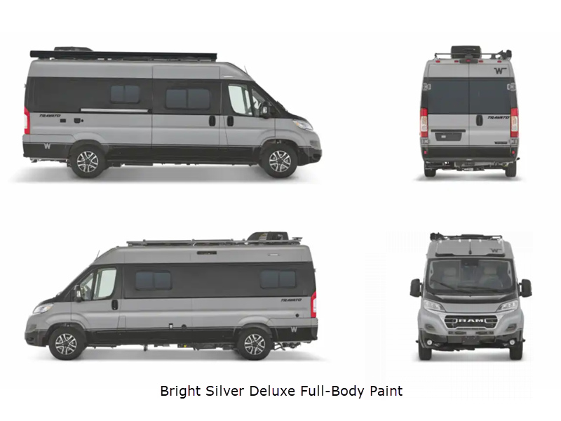 Sleeps 2 Length 21 ft Ext Width 6 ft 9 in Ext Height 9 ft 4 in Int Height 6 ft 3 in Interior Color Bleu with Walnut, Bleu with Walnut and White, Bleu with Weathered Teak Exterior Color Full Body Paint, Deluxe Full Body Paint Choices; Bright White, Bright Silver, Ceramic Gray, Sandstone Hitch Weight 3500 lbs GVWR 9350 lbs Fresh Water Capacity 18 gals Grey Water Capacity 12 gals Black Water Capacity 12 gals Fuel Type Gasoline Engine 3.6L V6 Chassis Ram ProMaster Horsepower 280 hp Fuel Capacity 24 gals Wheelbase 159 in Available Beds Two Twin Refrigerator Type Single Door Compressor Driven Refrigerator/Freezer 12V Refrigerator Size 4.3 cu ft Convection Cooking Yes Cooktop Burners 1 Shower Size 25" x 43" Number of Awnings 1 Axle Weight Front 4629 lbs Axle Weight Rear 5291 lbs LP Tank Capacity 25 lbs Water Heater Capacity 2.6 gal Water Heater Type Truma Combi Eco Plus TV Info Coach 24" HDTV Awning Info 13' Rack Mounted Power with LED Lighting and Bluetooth Control Gross Combined Weight 12000 lbs Shower Type Wet/Bath Shower Electrical Service 30 amp Similar Floorplans